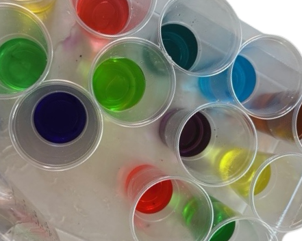 We began with the basic primary colours – red, blue and yellow and Roman would mix freely, watching new colours appear like magic. Over time, we expanded into more nuanced shades: blue green, navy, grape purple. It became about more than just colour mixing and it became observation, memory and familiarity. Now, Roman can often tell which dye we’ve used just by looking at the colour in the water, without needing to read the label on the dye.