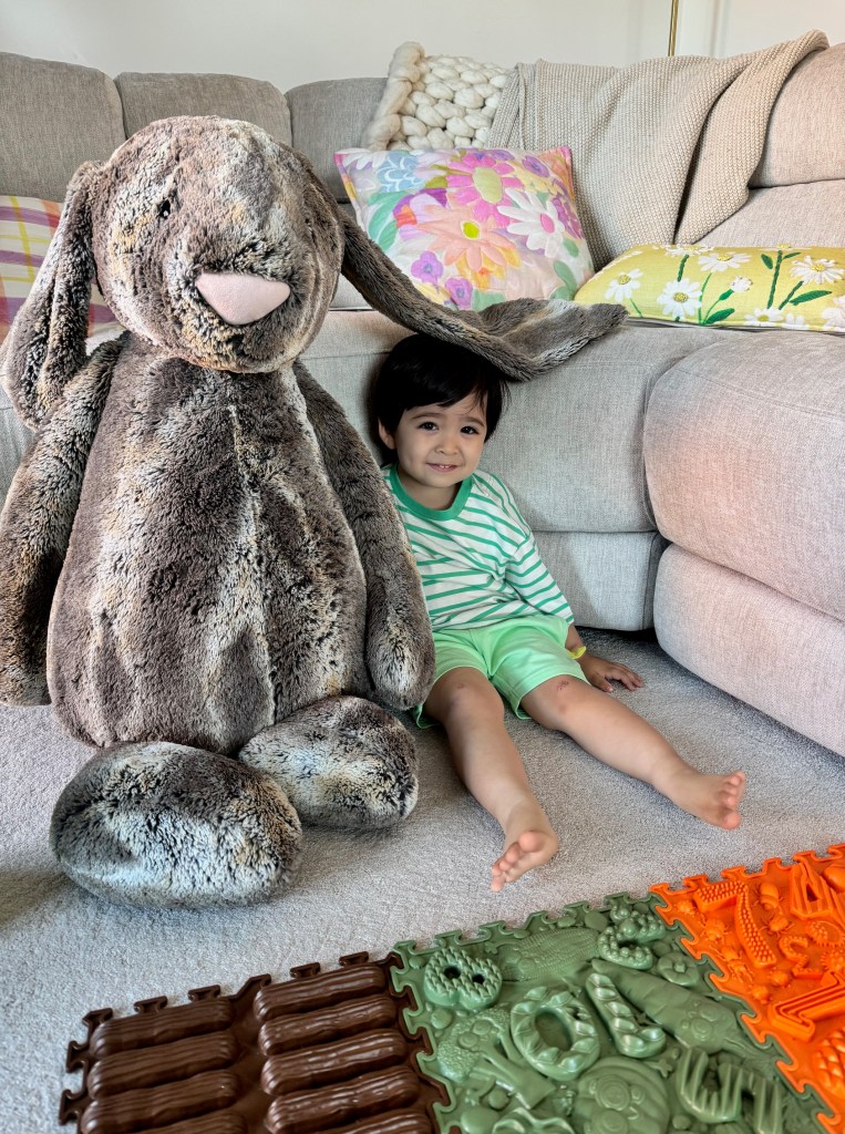 Bunnies have always been his biggest love and when we found a Jellycat bunny in one of his favourite shades of green (Moss), there was no turning back. Since then, we’ve made frequent visits to the Jellycat store and his collection has grown – introducing him not only to new shades like Ivy Green and Teal, but also to more descriptive language.